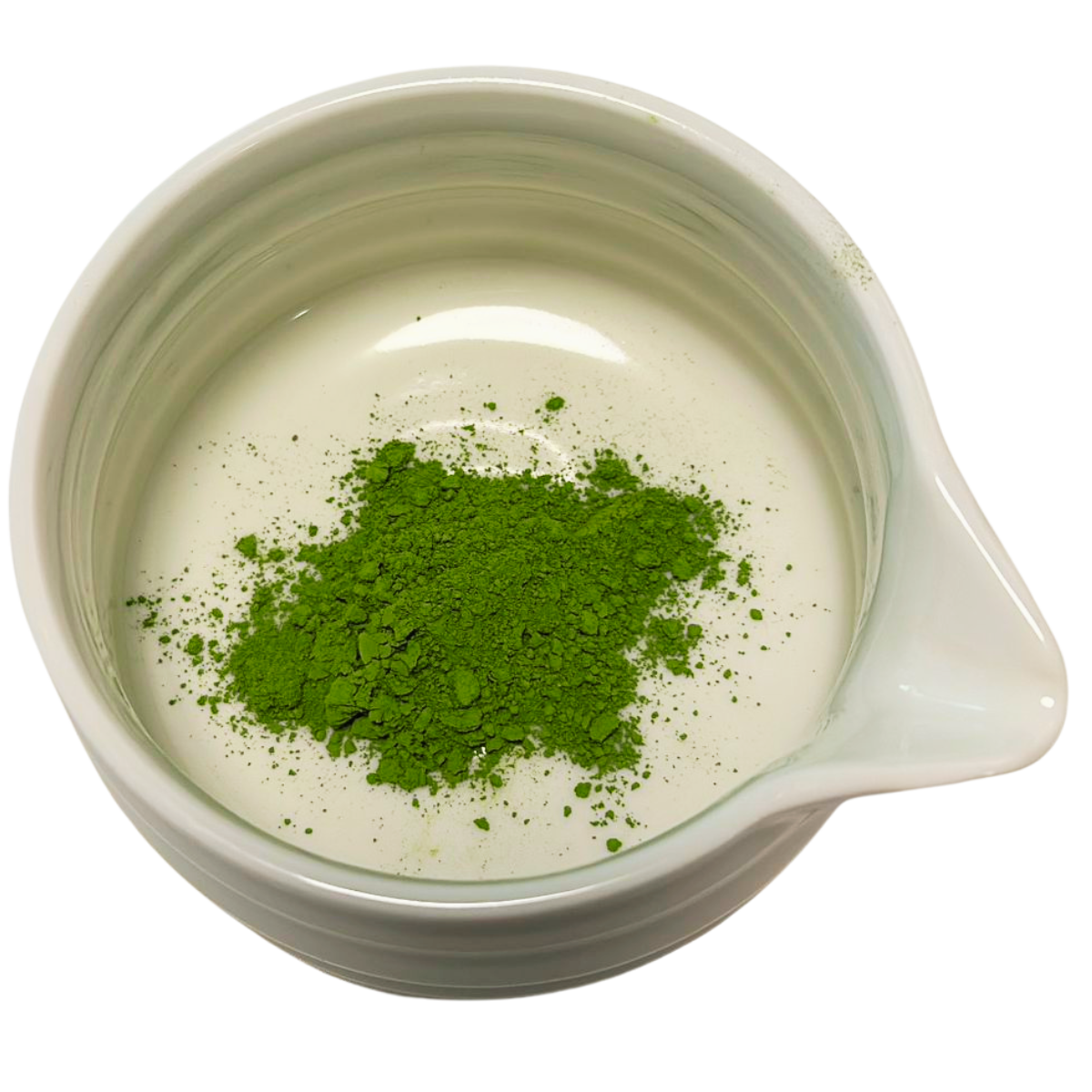 שמים 1–2 כפיות (כ־2 גרם) אבקת מאצ'ה מנופה לקערית. הניפוי מונע גושים ומבטיח מרקם חלק.