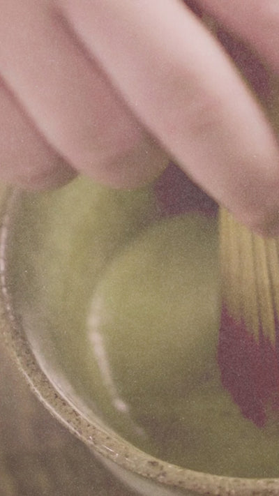 מוסיפים מעט מים חמים (לא רותחים – כ־70–80°C) ומקציפים בתנועות W מהירות בעזרת מקציף במבוק (chasen) או מקציף חשמלי – עד שנוצר קצף עדין.